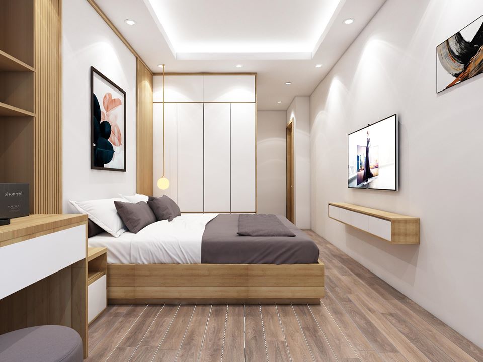 Nội thất trong phòng sử dụng chất liệu gỗ tạo cảm giác ấm cúng, sang trọng
